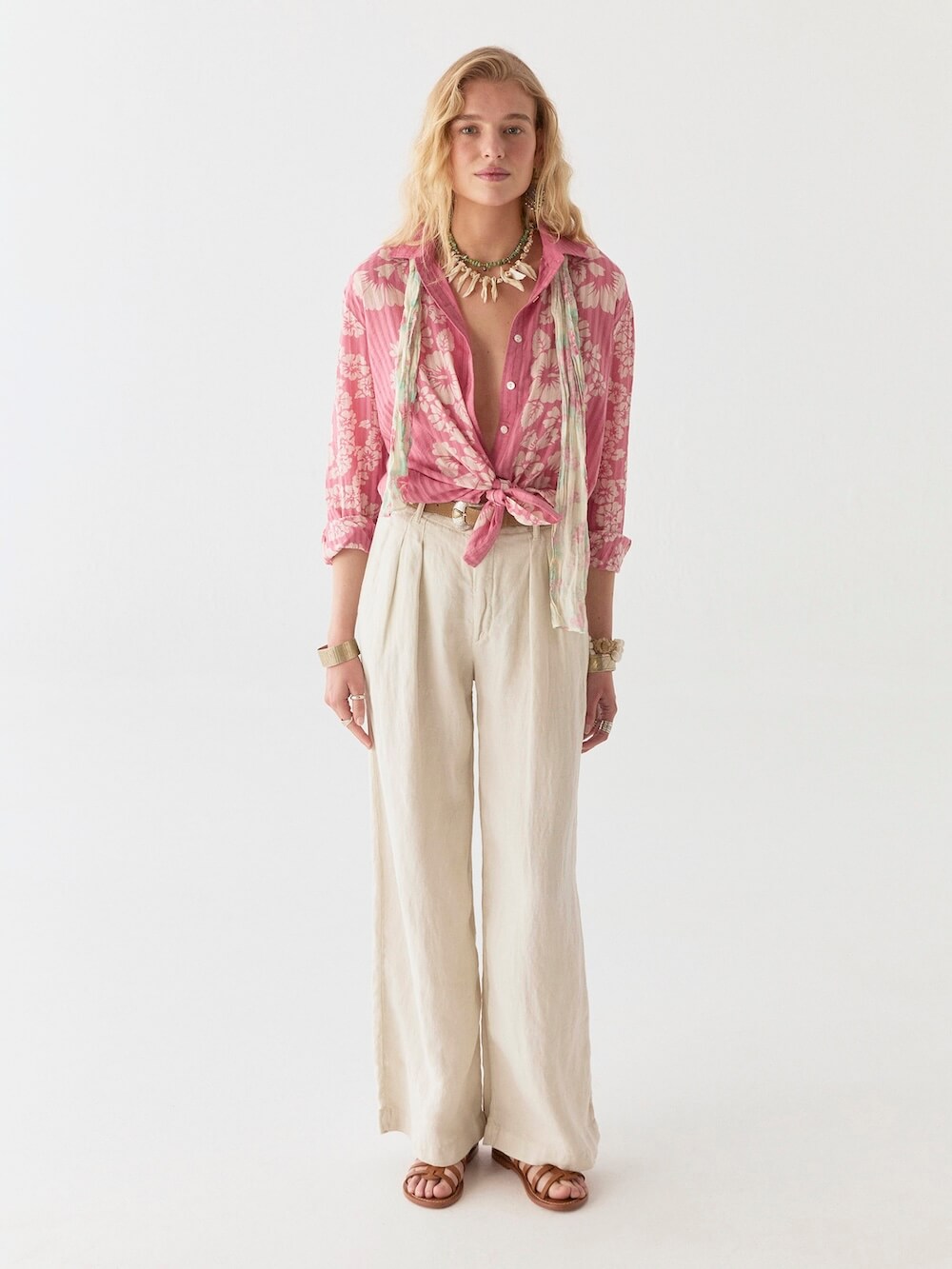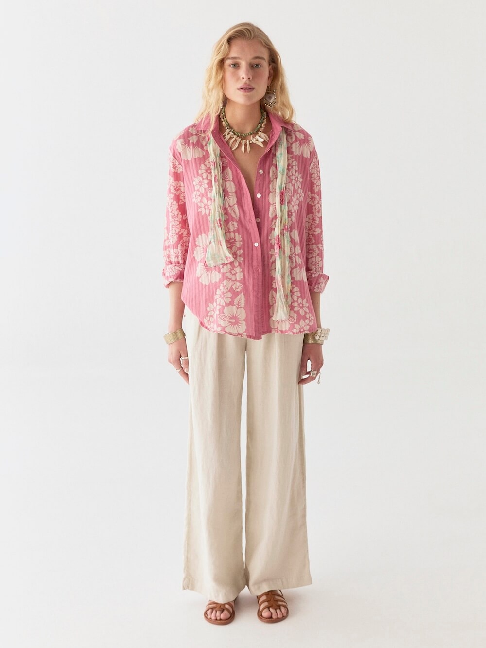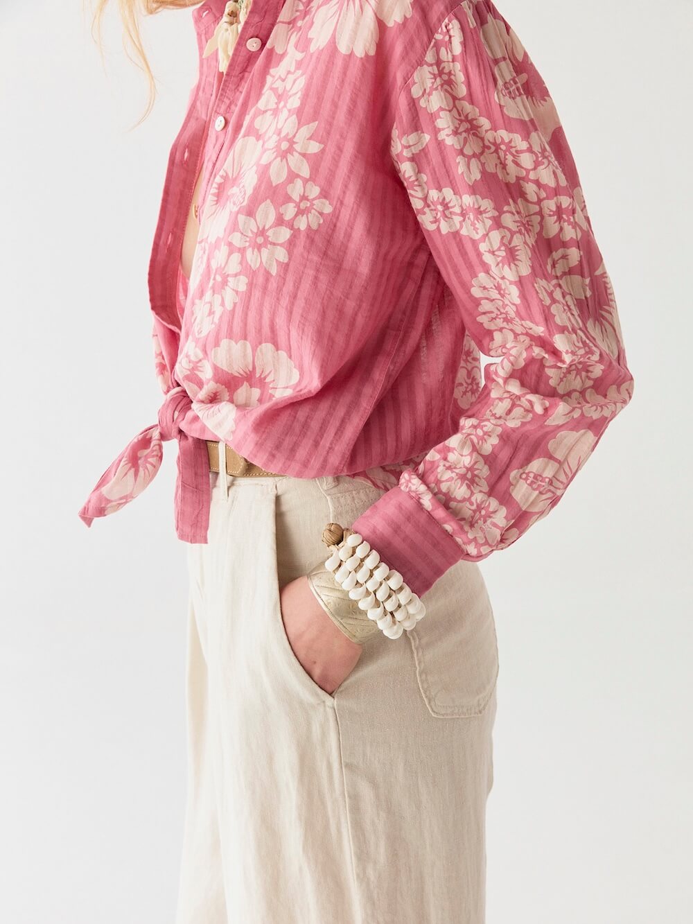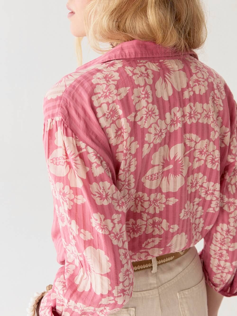 Featuring a sun-faded tropical print in bold Hawaiian-inspired florals, the Rusty Blouse strikes the perfect balance between laid-back cool and timeless femininity. The washed-in tones give it that perfectly imperfect, worn-in charm, like a favourite piece you’ve had for years.