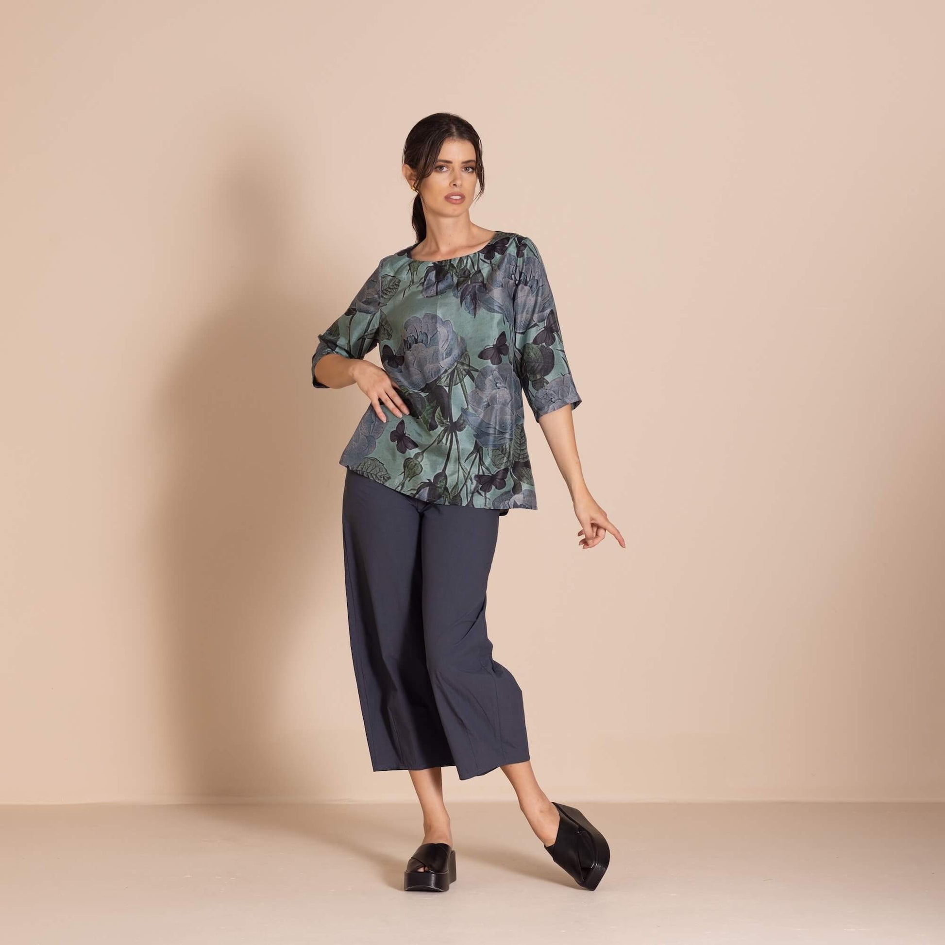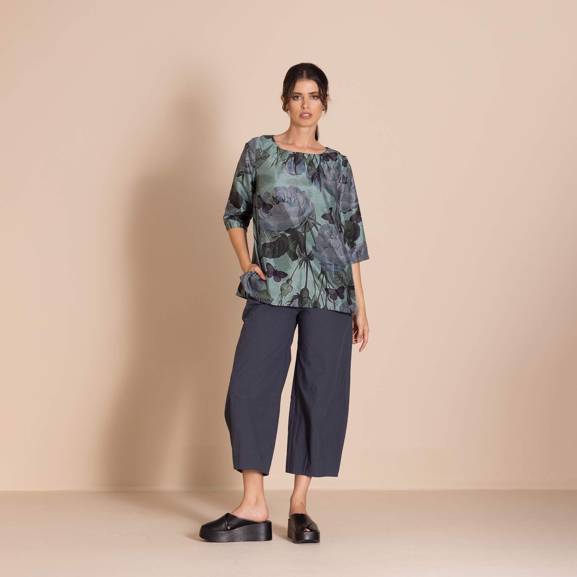 Elevate your eventwear wardrobe with the Silk Organza Coda Shell Top in Bottle by Megan Salmon; a masterclass in structured elegance.