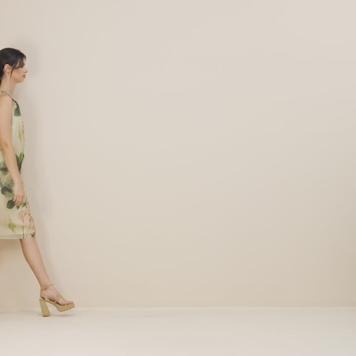 Step into effortless elegance with the Roses Silk Organza Shift Dress by Megan Salmon. Crafted in 100% silk organza and fully lined for comfort, this sleeveless shift features a breathtaking original print inspired by vintage florals — a romantic depiction of soft peach roses and muted green foliage, enlarged for striking visual impact.