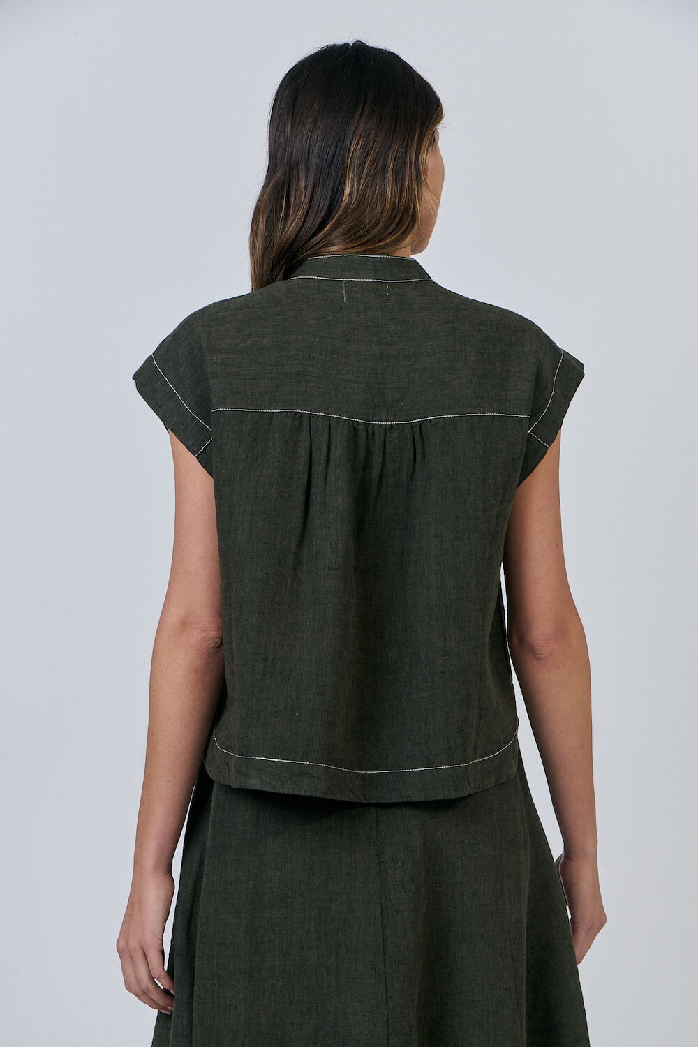 Embrace effortless style with the GA429 Cap Sleeve Linen Button Up Blouse in Licorice by Naturals by O & J